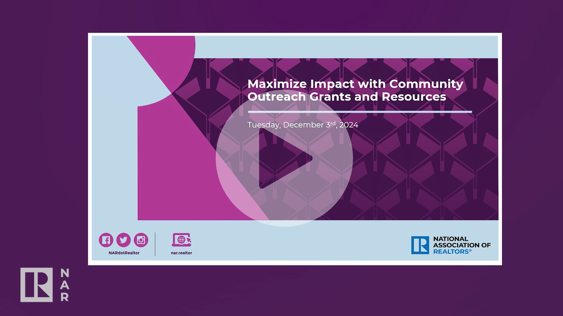NAR hosted an interactive virtual training and work session for association staff. This session will inspire and support participants, providing real-time feedback on ideas to advance fair and attainable housing and homeownership opportunities in their communities – and highlight how NAR grants can help.