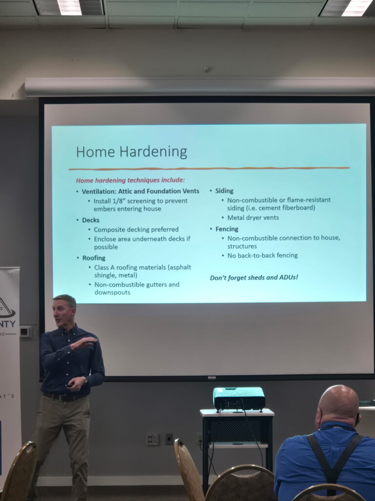 On the insurance front, a specialist explained the impact of insurance company fire maps and how to navigate potential costs with providers. Representatives from the state’s Division of Financial Regulation presented resources available to Oregonians facing cancelled policies, and another from the Oregon Fair Plan addressed options for those unable to obtain coverage. A wildfire mitigation consultant provided an overview of the local wildfire maps, and reinforced actions that homeowners could take to protect their property and communities through mitigation, management, and policy advocacy.