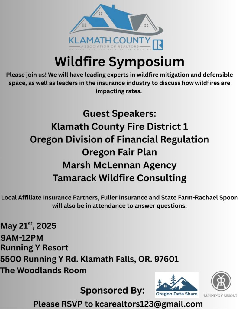 To learn more about how Oregon’s Klamath County Association of REALTORS® is working to help residents learn what they need to know about wildfire mitigation and fire insurance issues, contact Executive Officer Mandy Gomez at kcarealtors123@gmail.com or 541.882.2528; or Government Affairs Chair Misty Daniel at 541.281.2342.