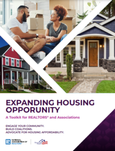 Expanding Housing Opportunity – A Toolkit for REALTORS and Associations is a collection of guides and resources designed to help REALTORS® and Associations conduct activities to address affordability challenges in the communities they serve. The toolkit is based on the successes of other associations and offers practical tips and examples for a range of activities including housing fairs, buyer education classes, housing forums and more.